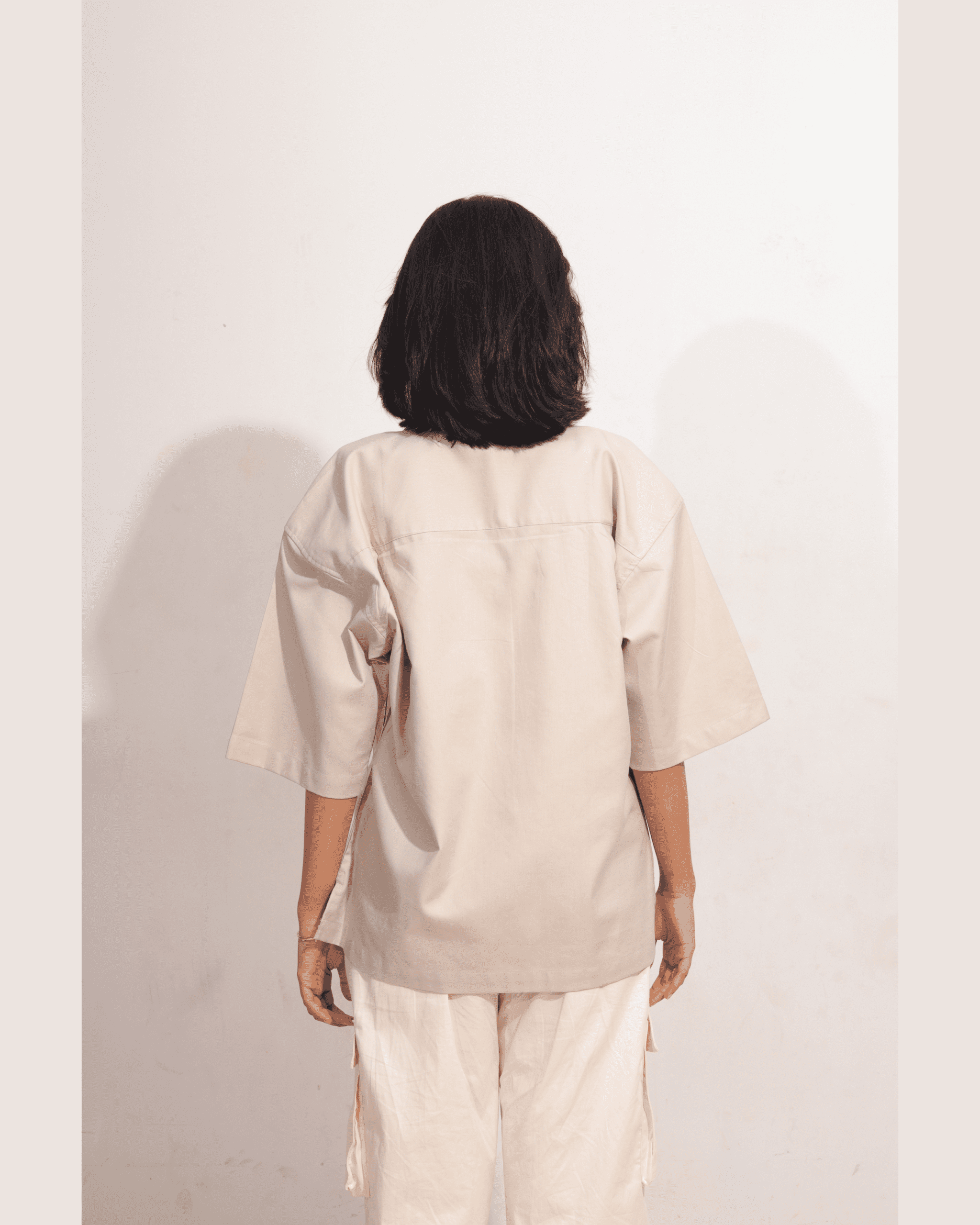 An unconventional garment merges casual comfort with a touch of retro elegance.