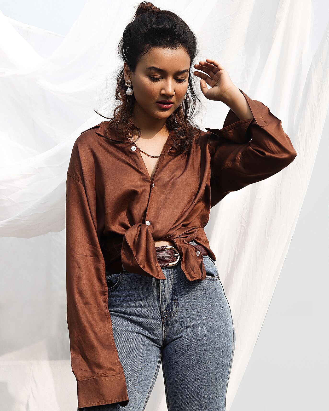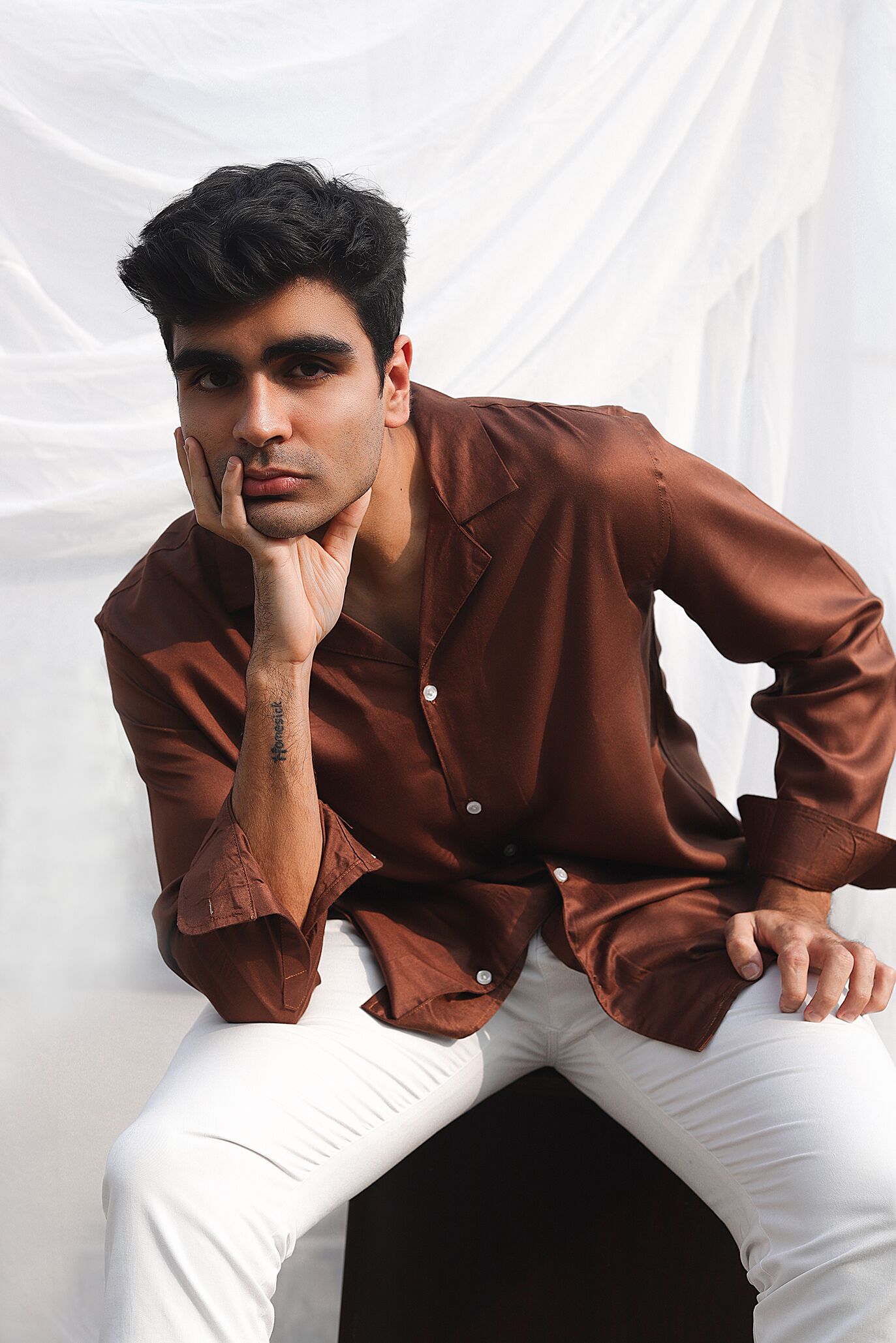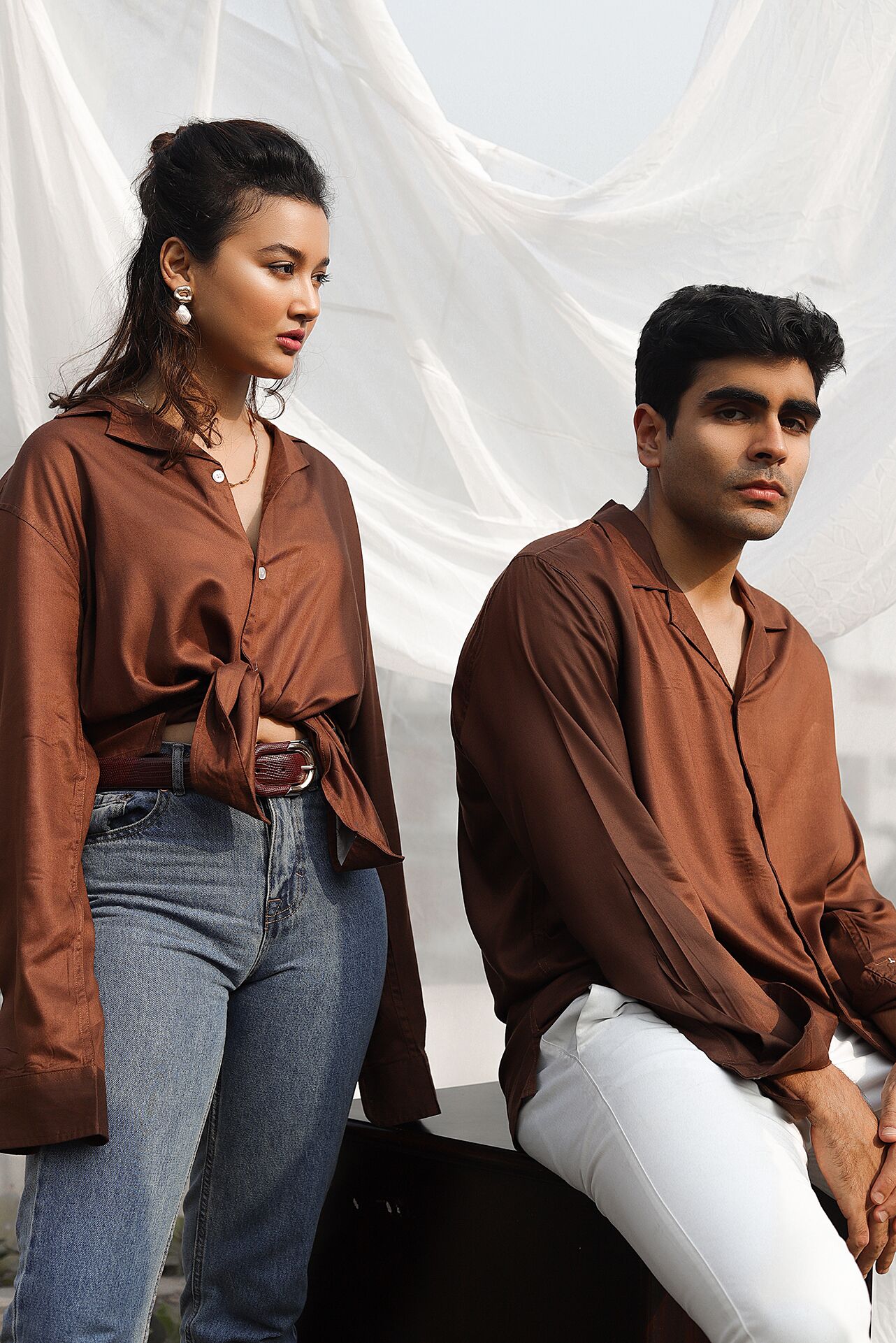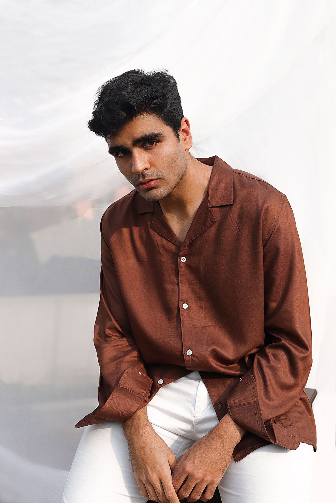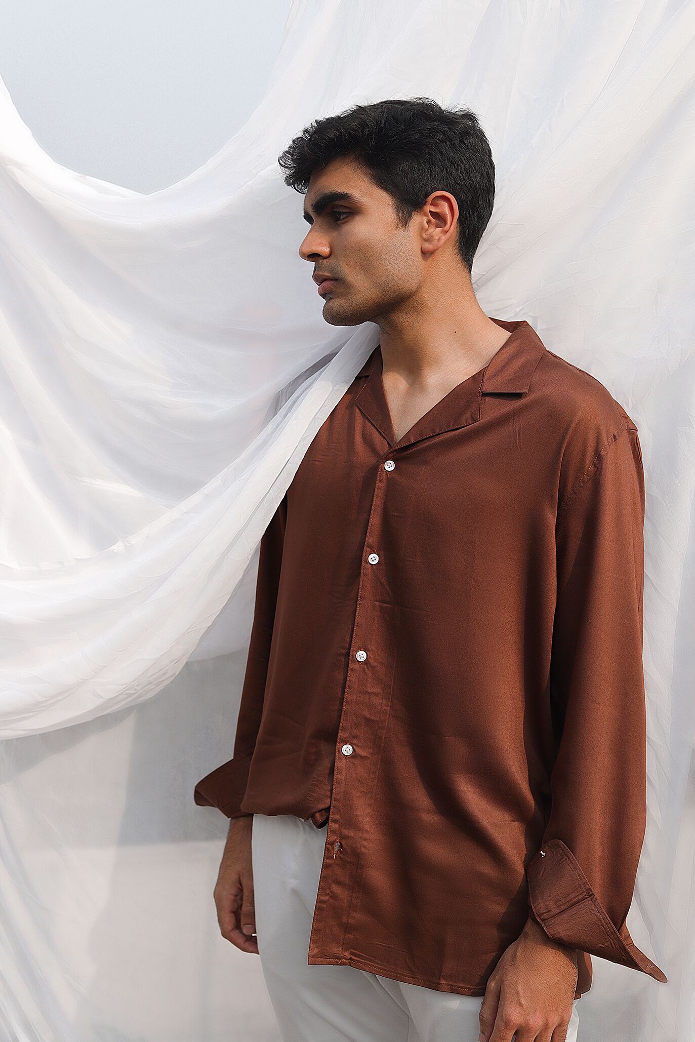 A relaxed fit shirt featuring a cuban collar and long sleeves.