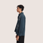 Percy | Embroidered Cuban Collar Teal Shirt