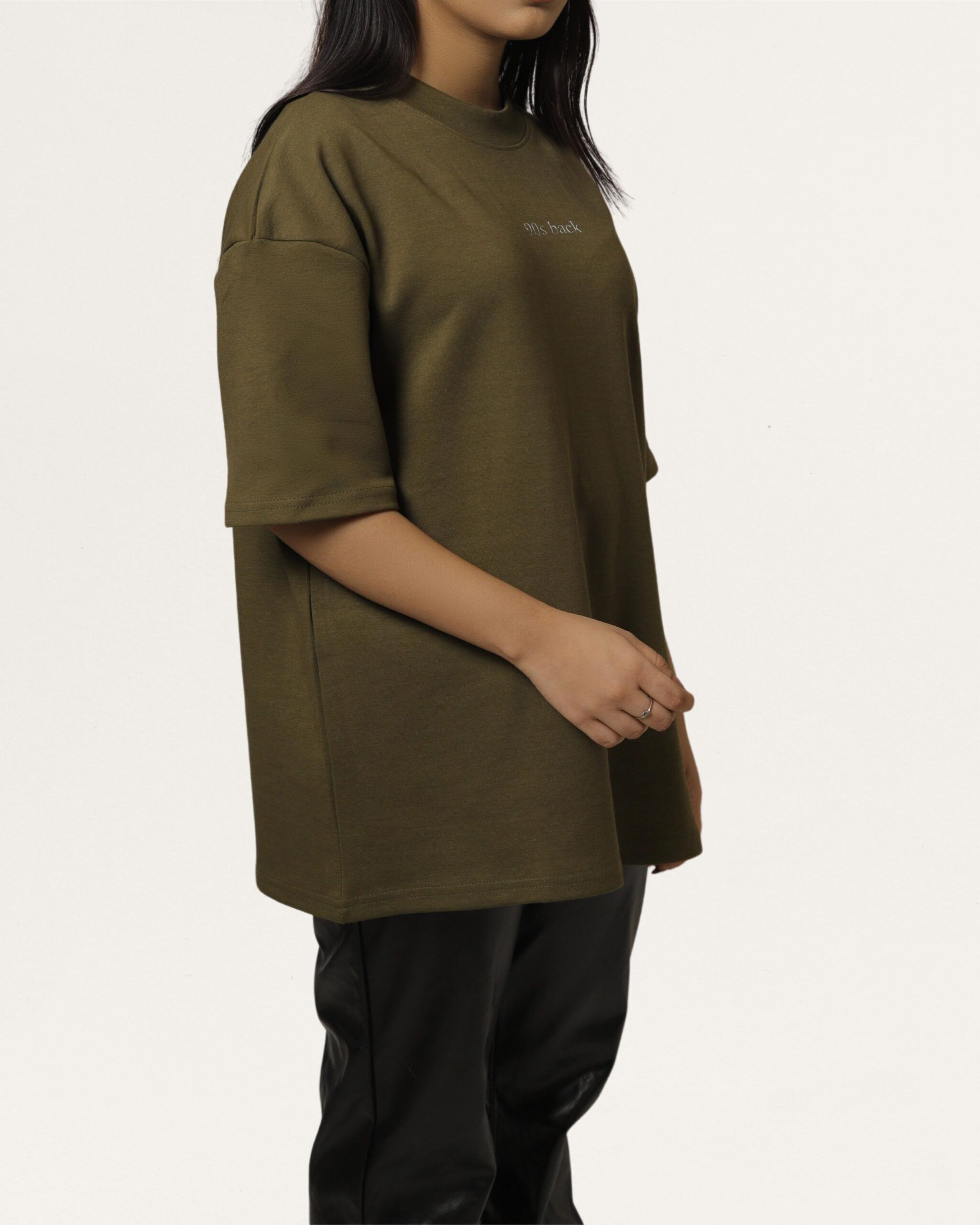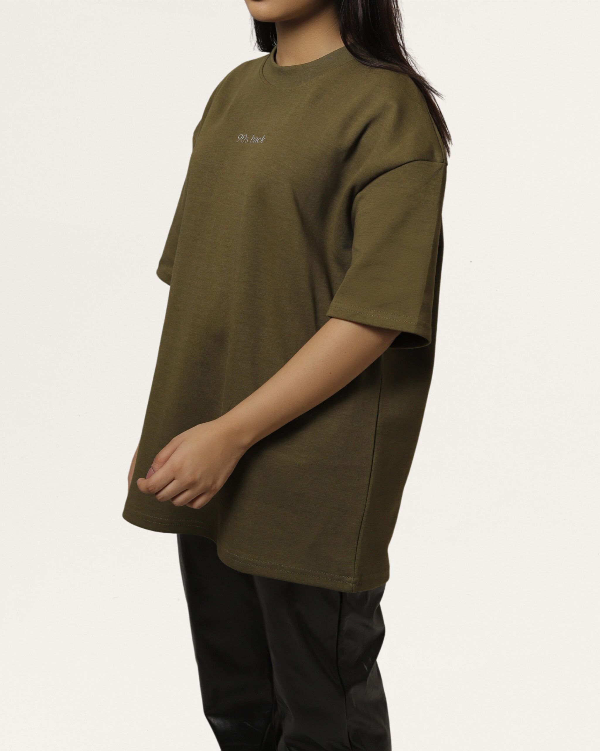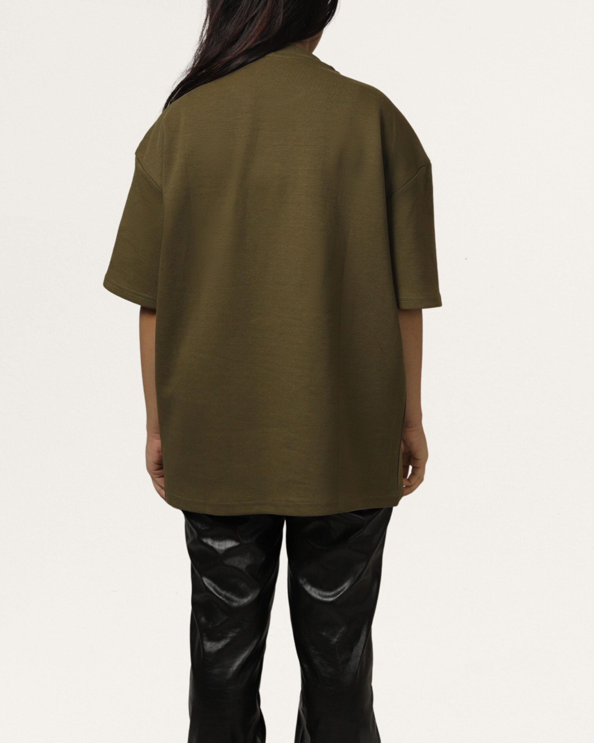 Oversized t-shirt featuring dropped shoulders and crew neck.